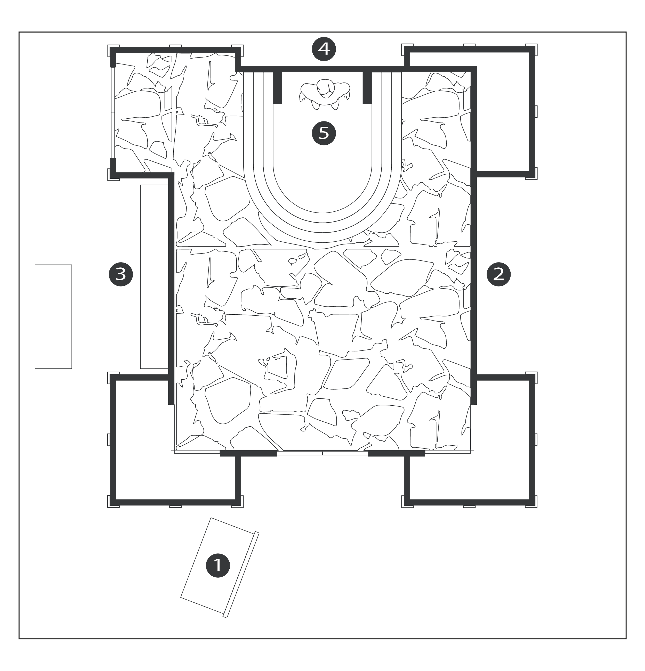 [ The exhibit booth is designed to transport visitors from the showroom floor to the world of the film, creating a quiet interior space of reflection. ]