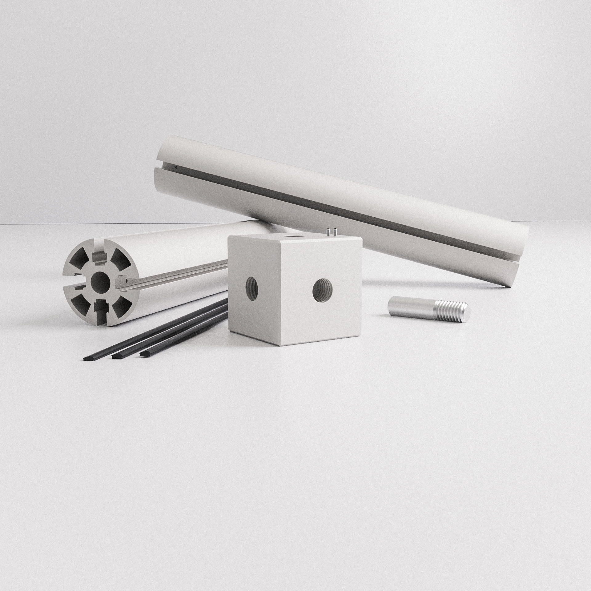 [ X-Trude is a modular system, taking notes from other iconic modular frame and panel systems, combined with the utilitarian aesthetic of extruded aluminum framing. ]